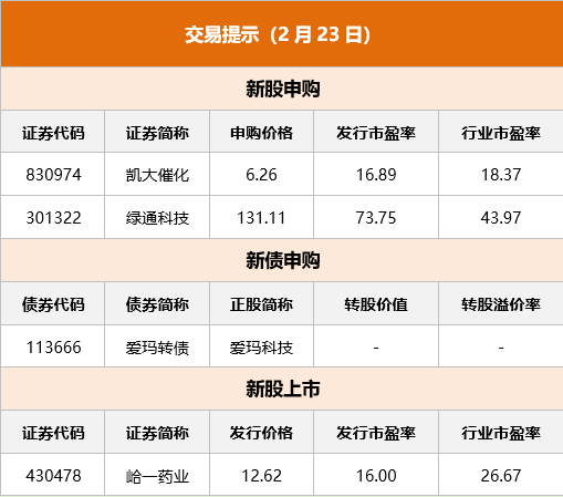 融资融券:截至2月21日,沪深两市两融余额为15820.9亿元,较前一交易日增加22.59亿元。其中,融资余额为14844.71亿元,较前一交易日增加23.52亿元;融券余额为976.19亿元,较前一交易日减少0.93亿元。