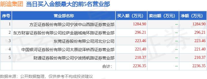 顶尖财经消息,沪深交易所2024年10月29日公布的交易公开信息显示,朗迪集团(603726)因有价格涨跌幅限制的日收盘价格跌幅偏离值达到7%的前五只证券登上龙虎榜。此次是近5个交易日内第1次上榜。