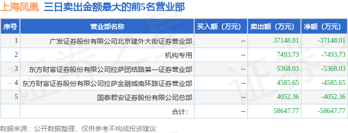 顶尖财经消息,沪深交易所2024年12月26日公布的交易公开信息显示,上海凤凰(600679)因有价格涨跌幅限制的日收盘价格跌幅偏离值达到7%的前五只证券,非ST、*ST和S证券连续三个交易日内收盘价格跌幅偏离值累计达到20%的证券登上龙虎榜。此次是近5个交易日内第4次上榜。