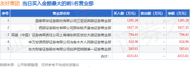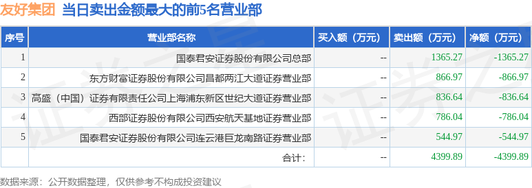 顶尖财经消息,沪深交易所2025年1月10日公布的交易公开信息显示,友好集团(600778)因有价格涨跌幅限制的日收盘价格跌幅偏离值达到7%的前五只证券登上龙虎榜。此次是近5个交易日内第3次上榜。