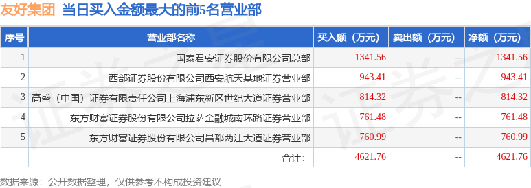 顶尖财经消息,沪深交易所2025年1月9日公布的交易公开信息显示,友好集团(600778)因有价格涨跌幅限制的日价格振幅达到15%的前五只证券登上龙虎榜。此次是近5个交易日内第3次上榜。