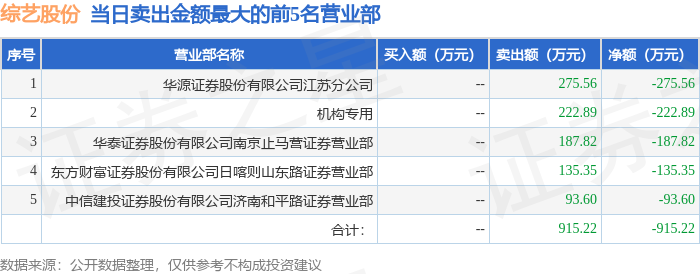 顶尖财经消息,沪深交易所2025年5月20日公布的交易公开信息显示,综艺股份(600770)因有价格涨跌幅限制的日收盘价格涨幅偏离值达到7%的前五只证券,非ST、*ST和S证券连续三个交易日内收盘价格涨幅偏离值累计达到20%的证券登上龙虎榜。此次是近5个交易日内第3次上榜。