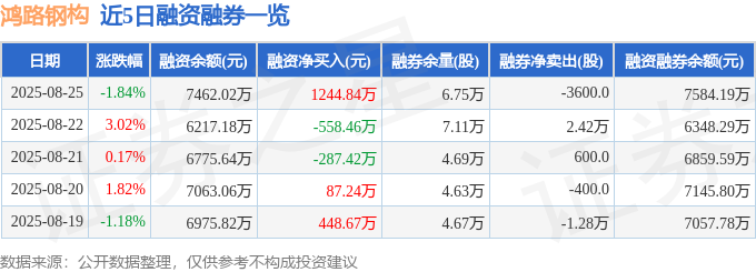顶尖财经消息,截至2025年8月25日收盘,鸿路钢构(002541)报收于18.1元,下跌1.84%,换手率2.24%,成交量11.13万手,成交额2.03亿元。